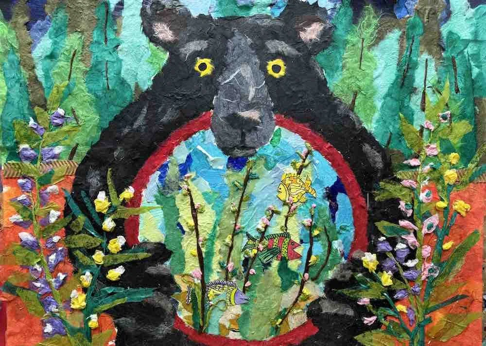 Today I work as a full time artist and teacher from my Artzmaker Studio in Williamsburg, Michigan, creating work that spans more media than most people expect: acrylic painting, pastel, watercolor, color pencil, charcoal, gouache, etching and linocut printmaking, handmade paper, collage, embroidery thread, sewing machine thread, oil base pens, Sharpie, conté pencil, and ink.